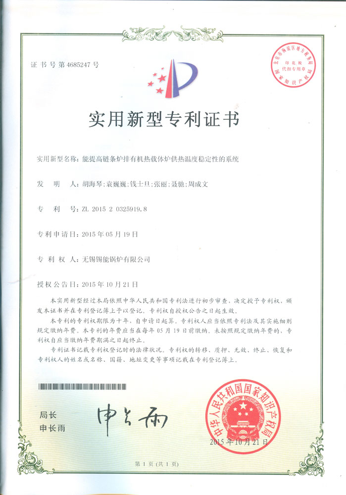 • 实用新型201520325919.8能提高链条炉排有机热载体炉供热温度稳定性的系统
