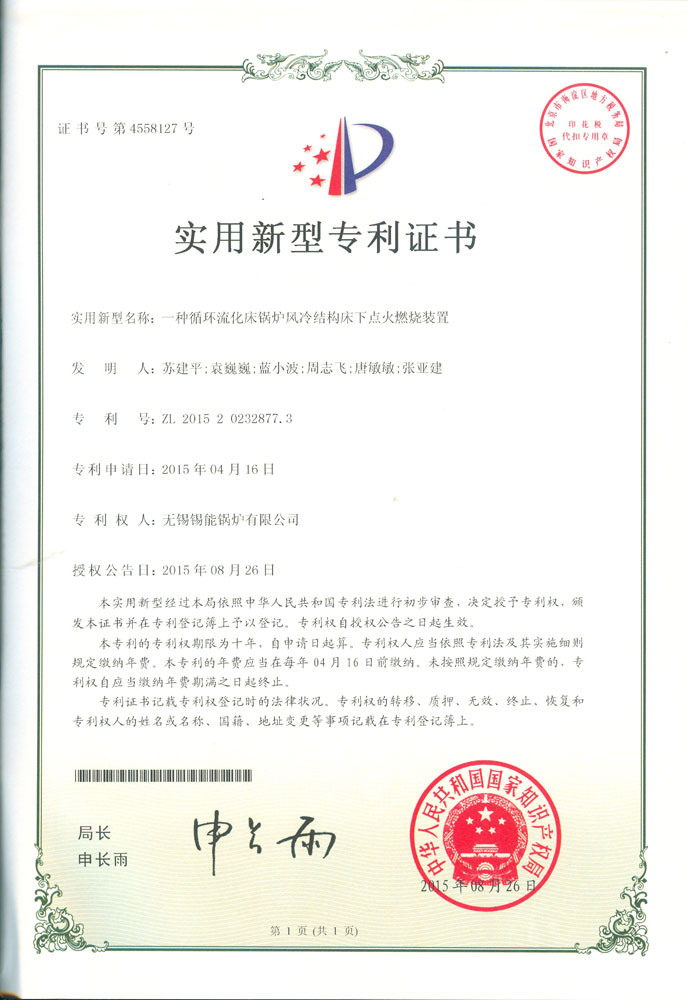 • 实用新型201520232877.3一种循环流化床锅炉风冷结构床下点火燃烧装置