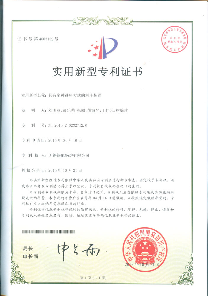 • 实用新型201520232712.6具有多种进料方式的料斗装置